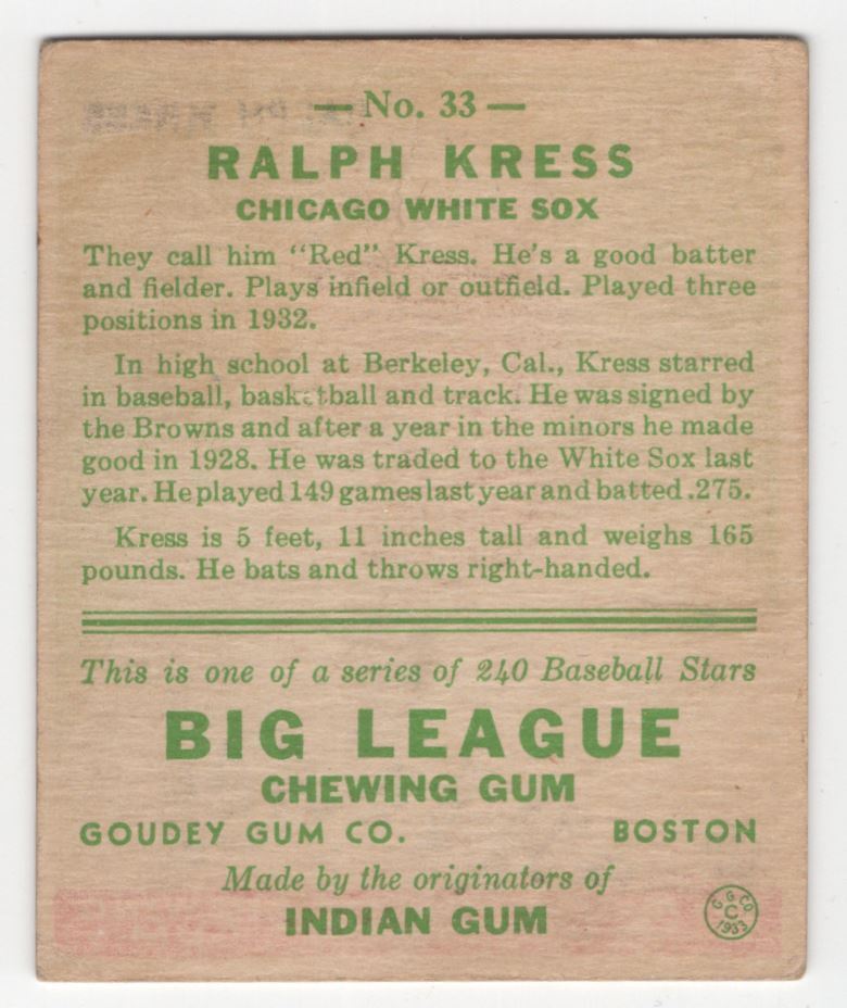1933 Goudey BITW 33 Ralph Kress