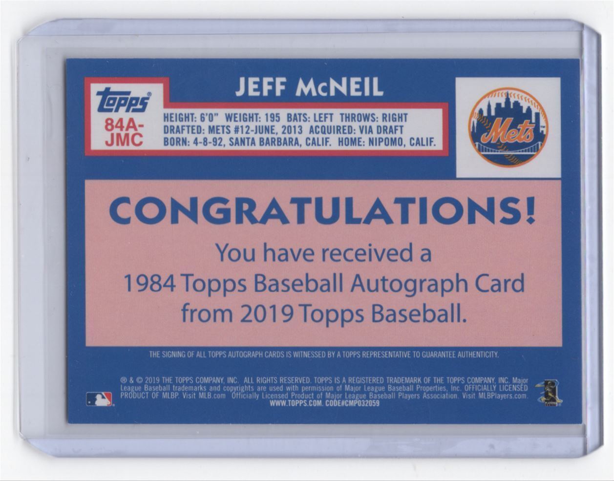2019 Topps Jeff McNeil RC Auto New York Mets #84A-JMC