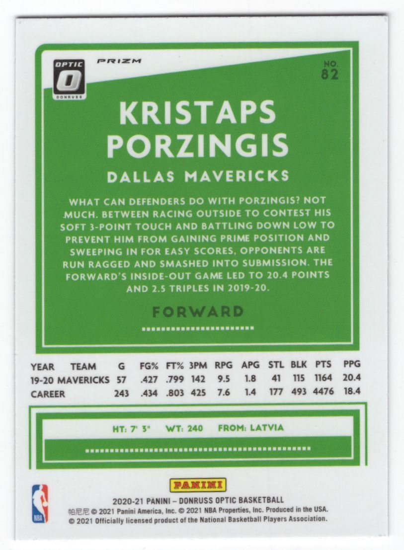 2020-21 Donruss Optic Purple Shock Kristaps Porzingis Dallas Mavericks #82