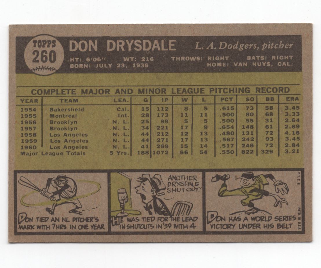 | 1961 Topps 260 Don Drysdale |