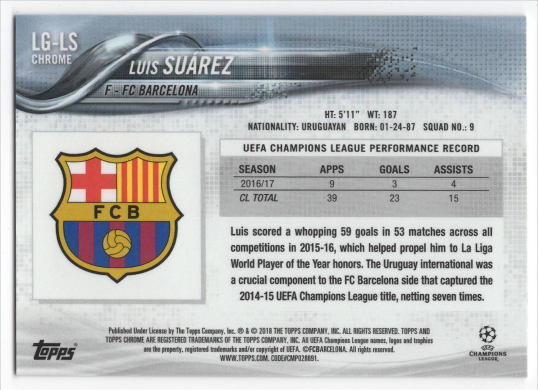 | 2018 Topps Chrome PROMO SAMPLE UEFA Champions League LG-LS Luis Suarez BITW |